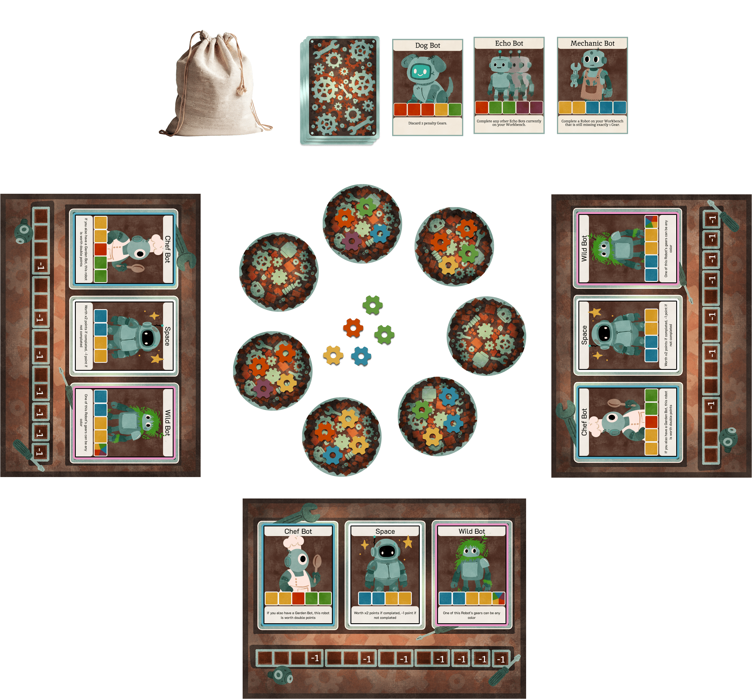 The last player drawing from the pile in a round would often be forced to take many resources they couldn’t use, resulting in overly harsh and unavoidable penalties which frustrated players. This resulted in an unintended strategy: the game became more about minimizing penalties than trying to fix robots.